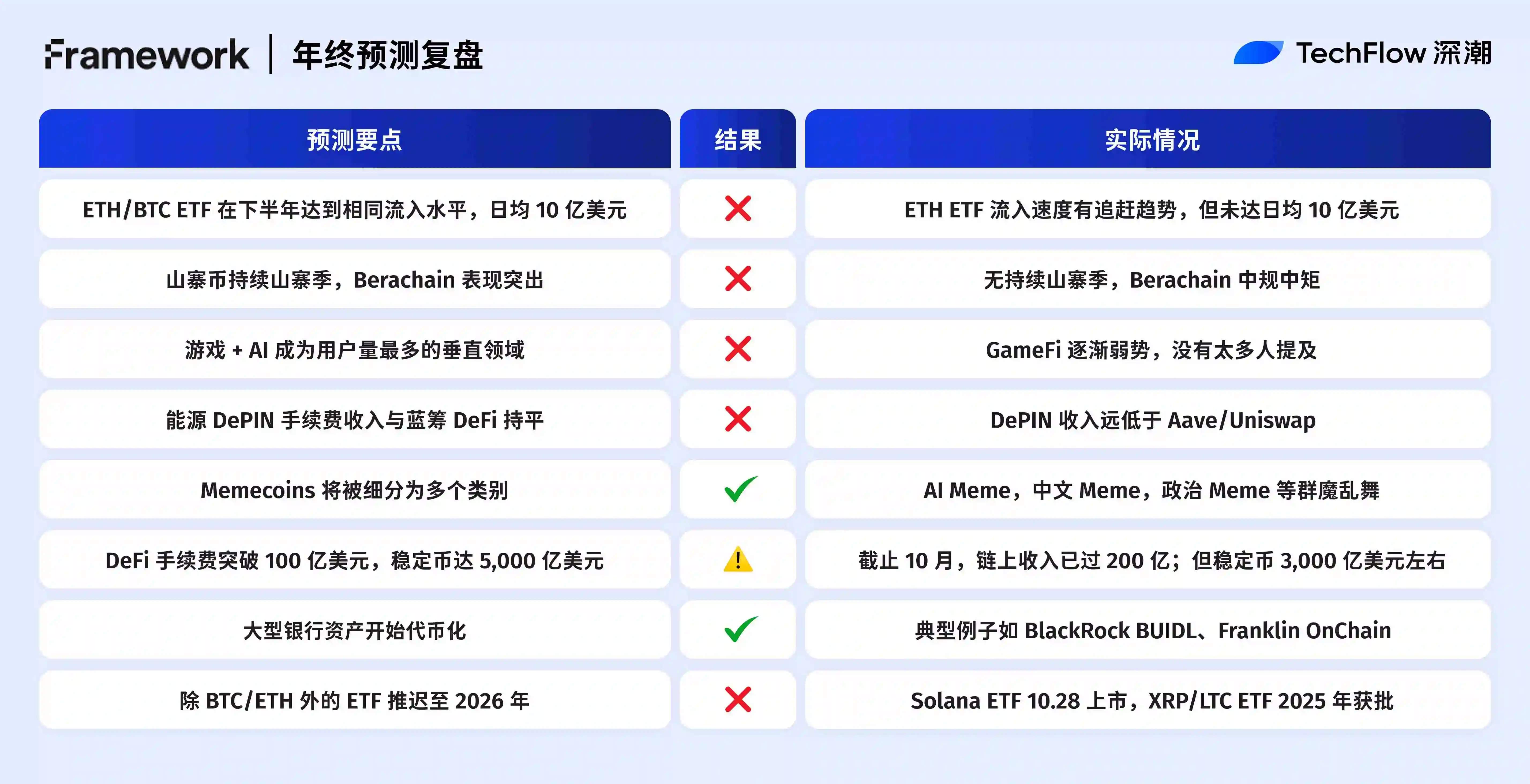 Overall, HashKey's predictions were precise regarding regulatory progress (ETFs, stablecoin legislation) and ecosystem structural changes (DEX emergence, L2 differentiation), but they were overly optimistic about price cycles.