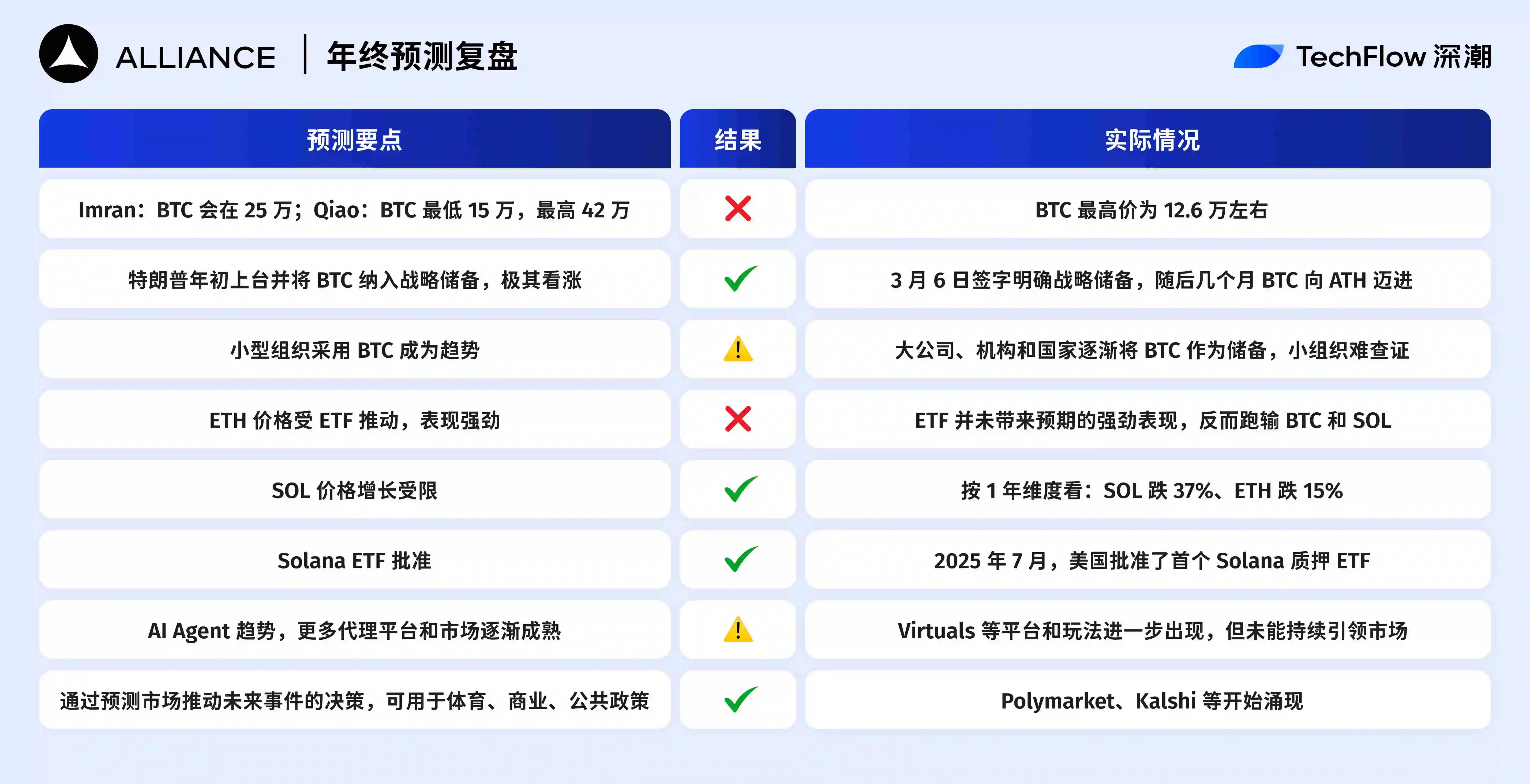 For example, BTC would surge to $200,000, stablecoin volume would double, AI agents would trigger on-chain activities, and crypto unicorns would rush to IPO... Now, a year has passed, have those predictions from back then all come true?