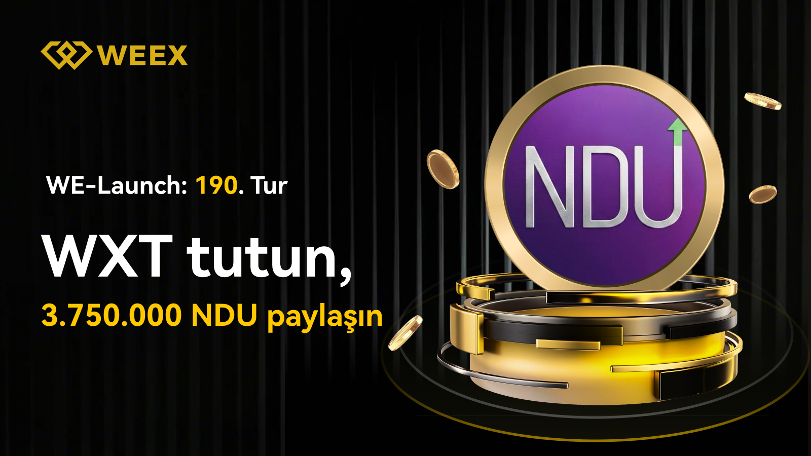 Etkinlik süresi boyunca WE-Launch'ta WXT veya NDU taahhüdünde bulunarak 3.750.000 NDU'yu ücretsiz olarak paylaşma şansı yakalayın!