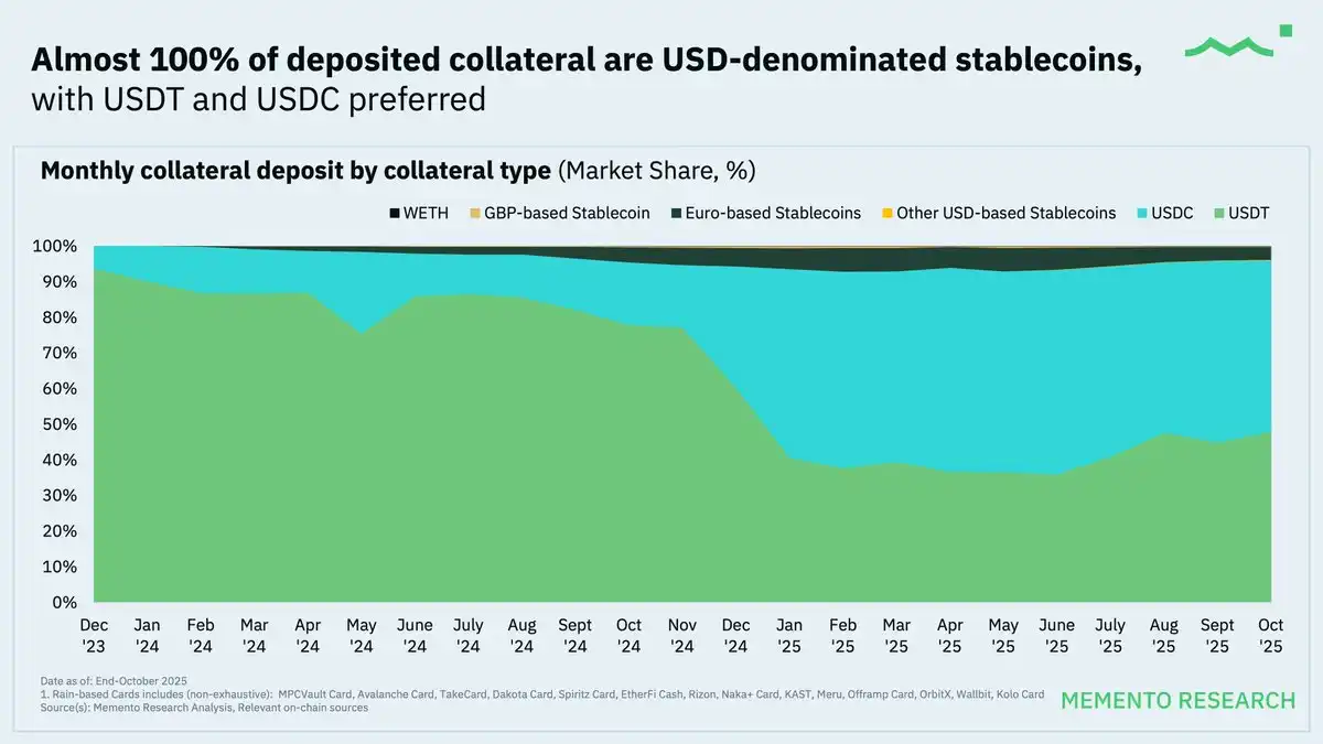 Between 2024, the monthly collateral deposit volume of crypto cards experienced exponential growth and further accelerated in 2025.