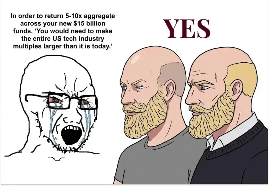 Some might say, with so much money, VC firms can't possibly allocate it sensibly to achieve outsized returns. But I guess a16z's response would probably be: "Blah, blah, blah." After all, they've always been about "hunting elephants, chasing whales"!
