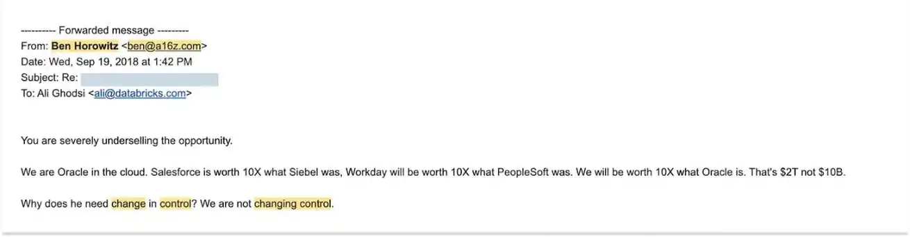 This is perhaps one of the most emphatic corporate emails in history, especially considering that at the time Databricks' revenue run rate (annualized revenue) was $100 million, with a valuation of only $10 billion; whereas today, the company's revenue run rate has exceeded $480 million, and the valuation has reached $134 billion.