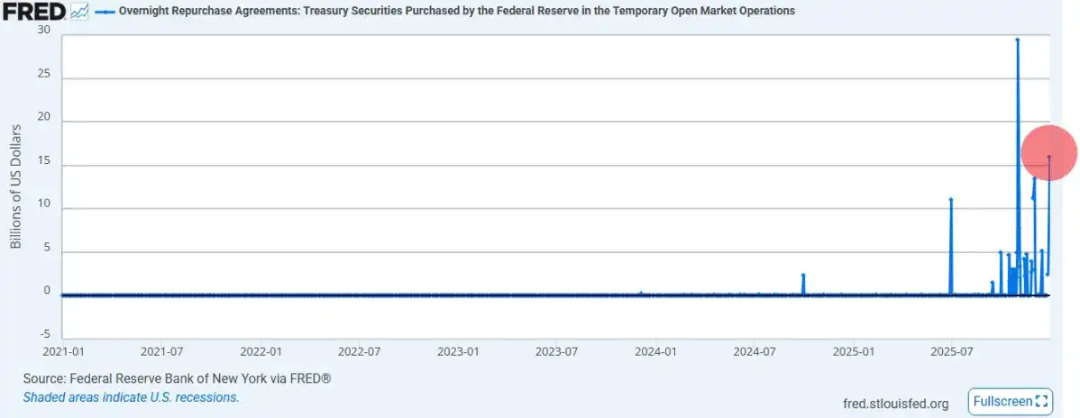 On December 30, 2025, according to Barchart data, the Fed injected $16 billion through overnight repurchase agreements into the U.S. banking system, marking the second-largest liquidity injection since the COVID-19 pandemic.
