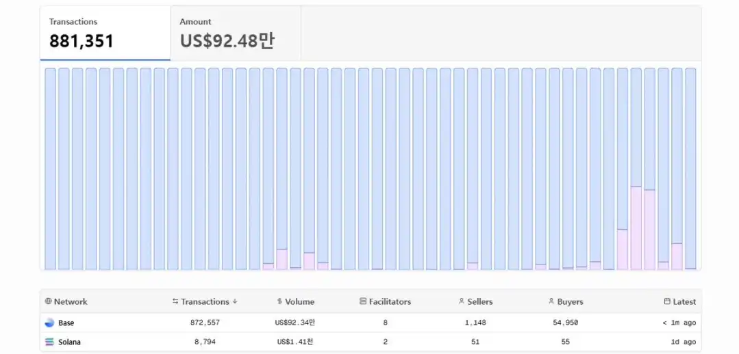 According to data from x402scan, as of now, approximately 55,000 buyers have initiated 879,000 transactions with 1,000 sellers. While the transaction volume appears significant, the total transaction amount is only about $923,000—indicating that x402 still has a significant gap to reach the "application stage."