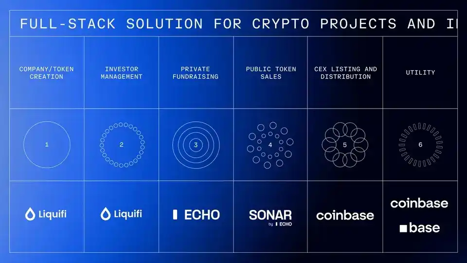 In July 2025, they had just acquired the token management platform LiquiFi. Now, they have acquired Echo. LiquiFi manages post-token issuance transactions, Echo handles the fundraising phase, combined with Coinbase's own exchange business, forming a complete chain from the primary market to the secondary market.