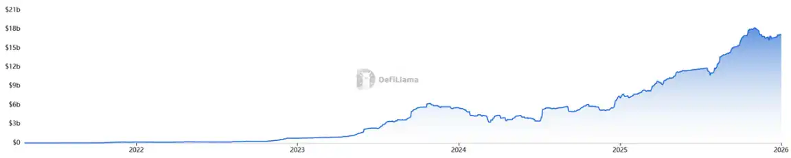The latest data from DefiLlama shows that the current total value locked (TVL) in DeFi has risen to $117.9 billion, still at an all-time high. Of this, the total value of Real World Assets (RWA) has reached $17.31 billion, experiencing explosive growth since 2025.
