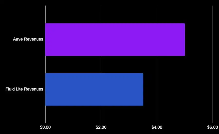 Fluid Lite ETH: 20% performance fee + 0.05% exit fee, no platform management fee. Borrowed $1.7 billion wETH from Aave, paid approximately $33 million in interest, of which about $5 million goes to Aave, Fluid's own revenue is close to $4 million.