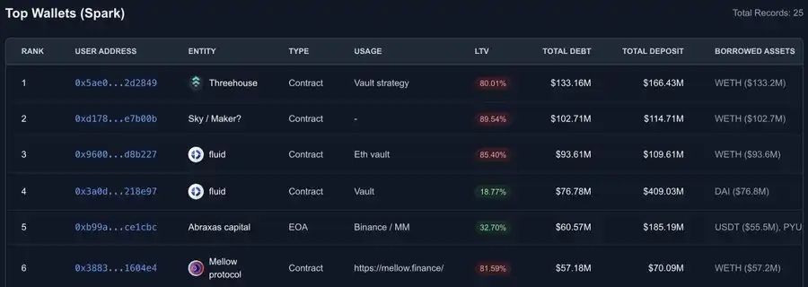 I analyzed the top 50 wallet addresses on Aave and SparkLend and labeled the major borrowers.