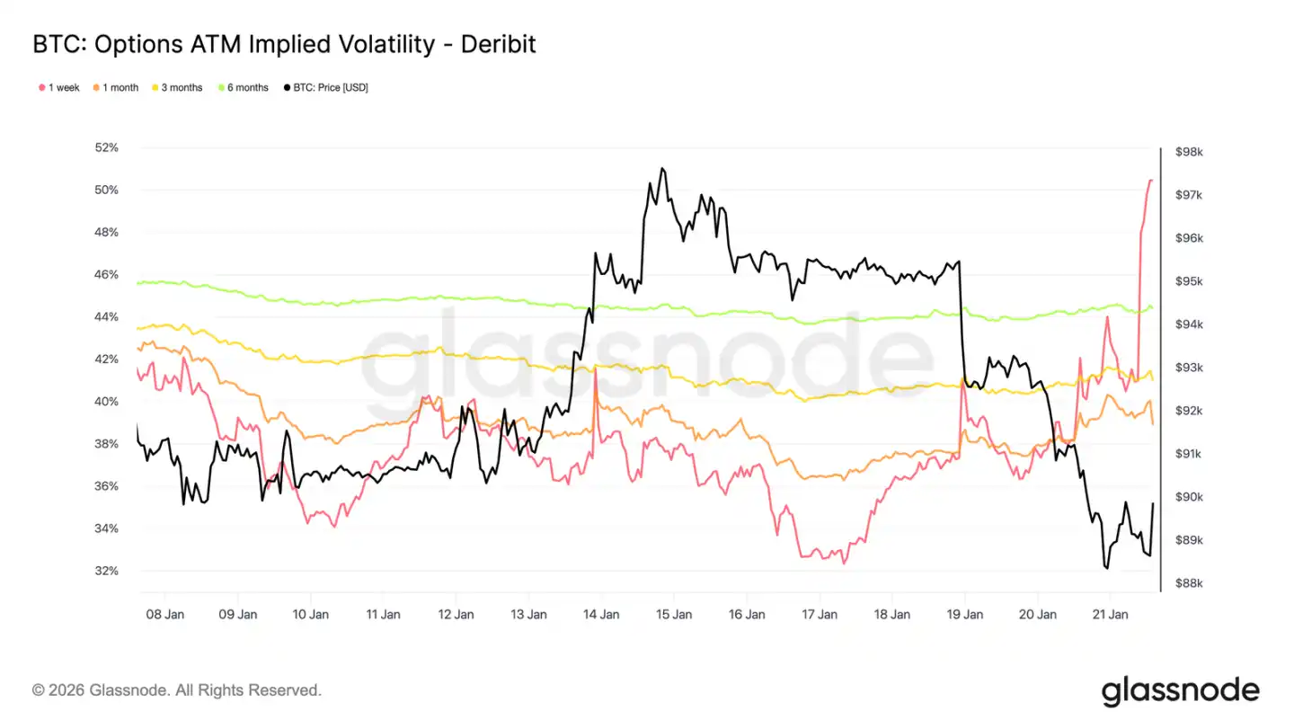 The sharp steepening at the very front end of the volatility curve indicates that traders are engaging in tactical operations rather than reassessing the mid-term risk structure. Only the short-term volatility adjustment reflects event-driven uncertainty, rather than a transformation of the entire volatility regime.