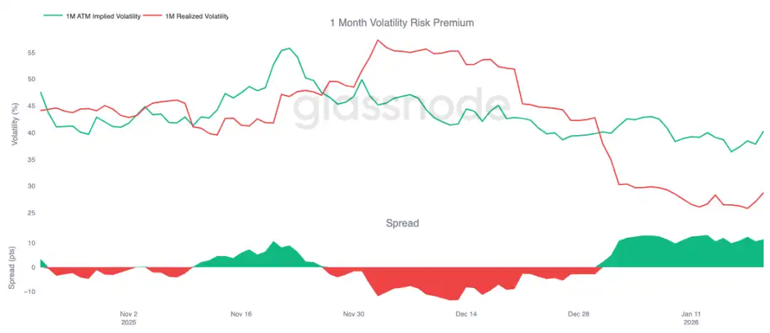 This dynamic is self-reinforcing, suppressing volatility increases. As long as selling volatility is profitable, more participants will join in, thus keeping implied volatility at lower levels. As of January 20, the one-month period volatility spread is around 11.5 volatility points, favoring the sellers, which clearly demonstrates that the current environment is still conducive to selling volatility.
