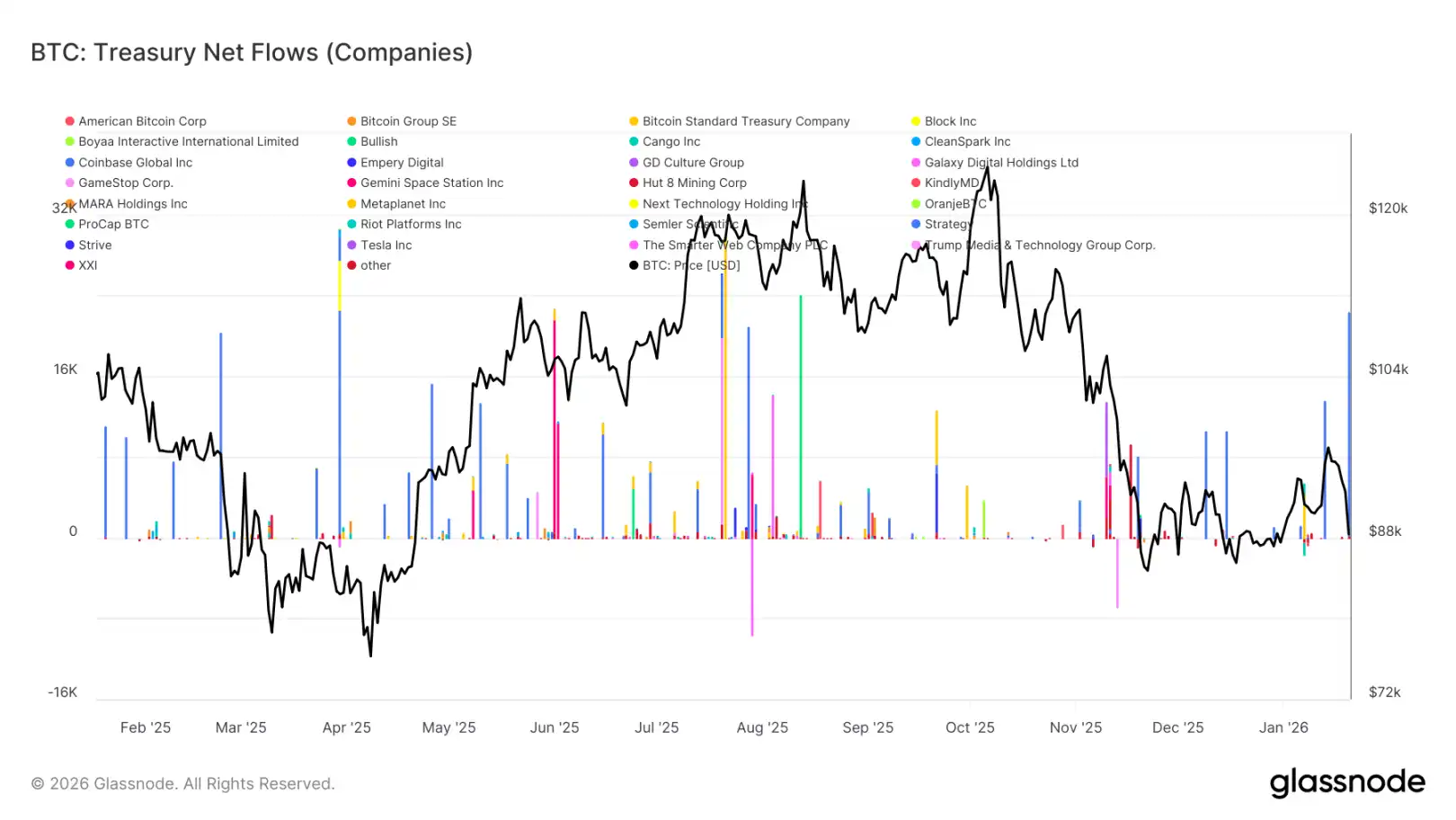 Generally speaking, the latest data indicates that corporate treasuries are only a marginal, selective source of demand, with their impact being intermittent and not yet exerting a decisive influence on the overall price dynamics.