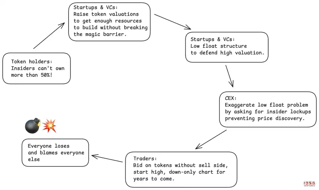 · Failed projects continue to issue tokens to gain liquidity or extend their life, even if the product has zero market fit. As long as projects are expected to issue tokens, regardless of success, failed projects will continue to flood the market.
