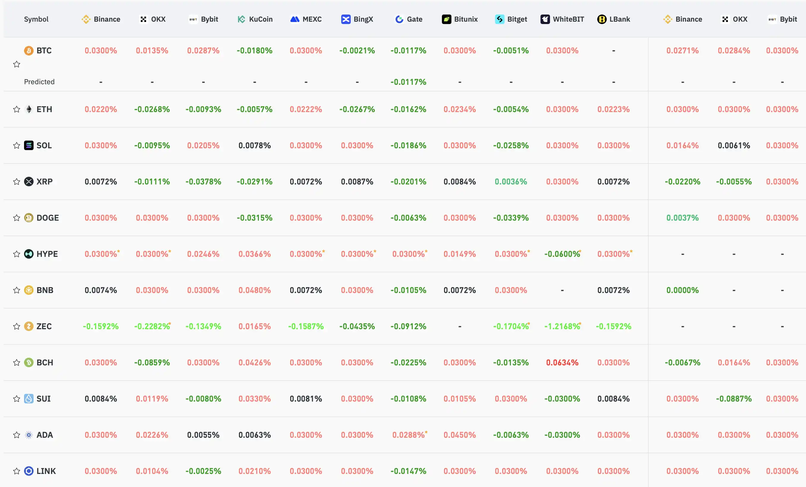 Daily Market Overall Funding Heatmap (as reflected by Funding Rate) and Token Unlocks