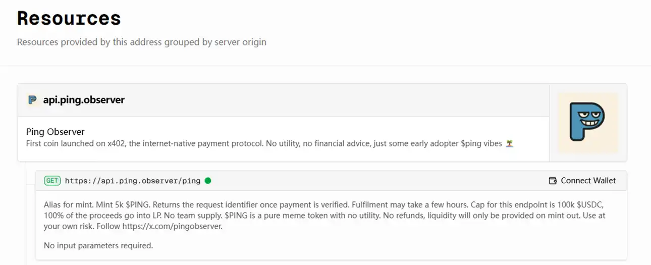 The workflow also explains why the minting process of $PING is likened to an inscription, as it needs confirmation from the x402 validator. During the minting process, a large number of minting requests not only bombarded the minting interface repeatedly but also provided the first real stress test for the x402 protocol.
