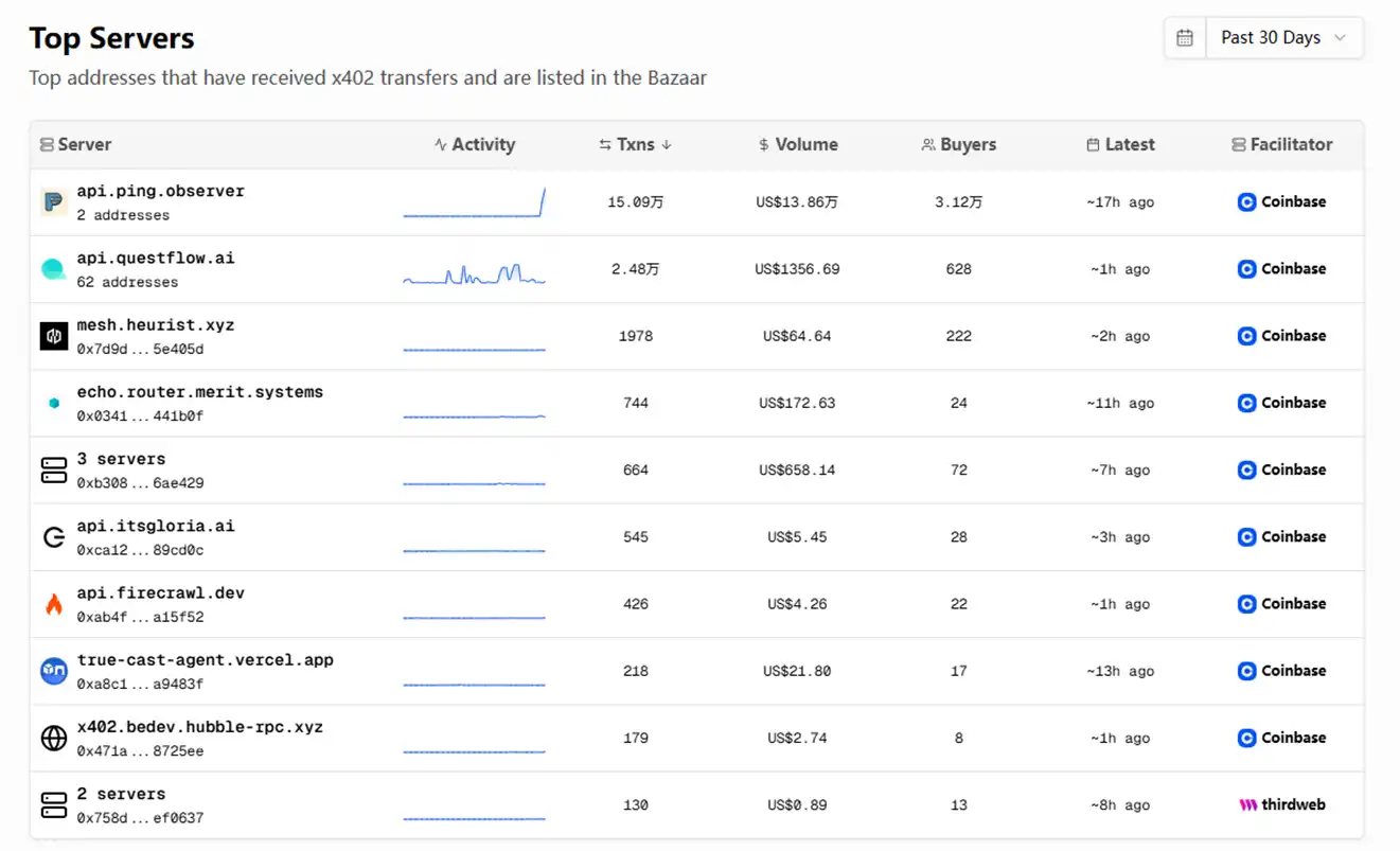 Data from the past 30 days shows that the $PING interface has received over 150,000 x402 transactions, totaling approximately $140,000, leading by a landslide over the second-ranked Questflow
