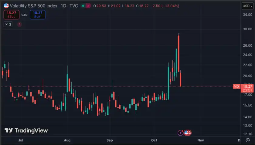 The VIX index has significantly retreated, rising to 29 on Friday morning and now falling to 18. The S&P 500 index and the Nasdaq index both rose during Monday's trading session, coming close to historical highs in the closing price.