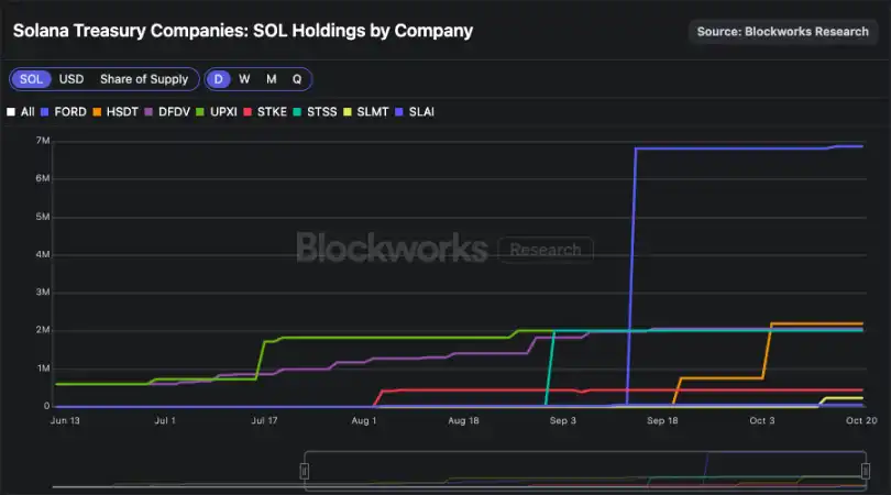 The trading volume of SOL DATCOs also tells a similar story. While DFDV once dominated much of the trading volume in this space, the situation has now shifted to a more even distribution among top names. Although FORD holds around 43% of the SOL held by DATCOs, it accounts for only about 10% of the trading volume in this space, indicating a relatively low turnover rate of its stock. These data may well explain why there is very little SOL accumulated through ATM issuance by FORD.