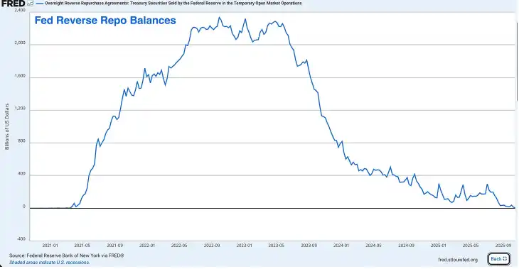 The Fed is expected to officially announce the end of its quantitative tightening policy at the December or January FOMC meeting. They will frame it as a "technical adjustment to maintain ample reserves" rather than a policy shift. If there is a significant reserve drawdown again before year-end, the Fed may be forced to issue an emergency statement, as it did in 2019.