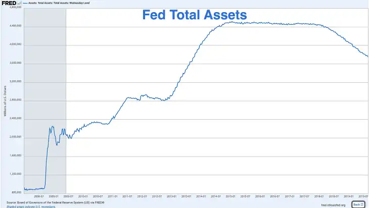 The year-end surge in the Fed's total assets in 2019 was credited to quantitative easing, with the printing press starting to roll.