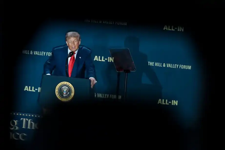 President Trump spoke at a July AI summit in Washington, co-hosted by the tech podcast "All-In" and the tech conference "Hill & Valley Forum." Photo Credit: Kenny Holston/The New York Times