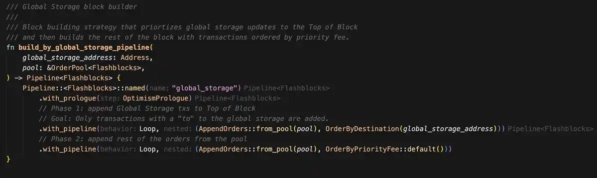· Builder Strategy: This is a key off-chain component. The block builder identifies transactions sent to the global storage contract, allocates 5–10% of the block's Gas to these update transactions, prioritizes them by fee, and sorts them to prevent spam transactions.