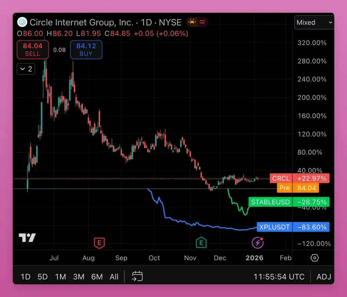 By 2025, the narrative has shifted from "trading" to "payment infrastructure." However, the narrative of transacting stablecoins is not easy: Circle's IPO saw a surge followed by a retracement, and other proxy assets' performance has been lackluster.