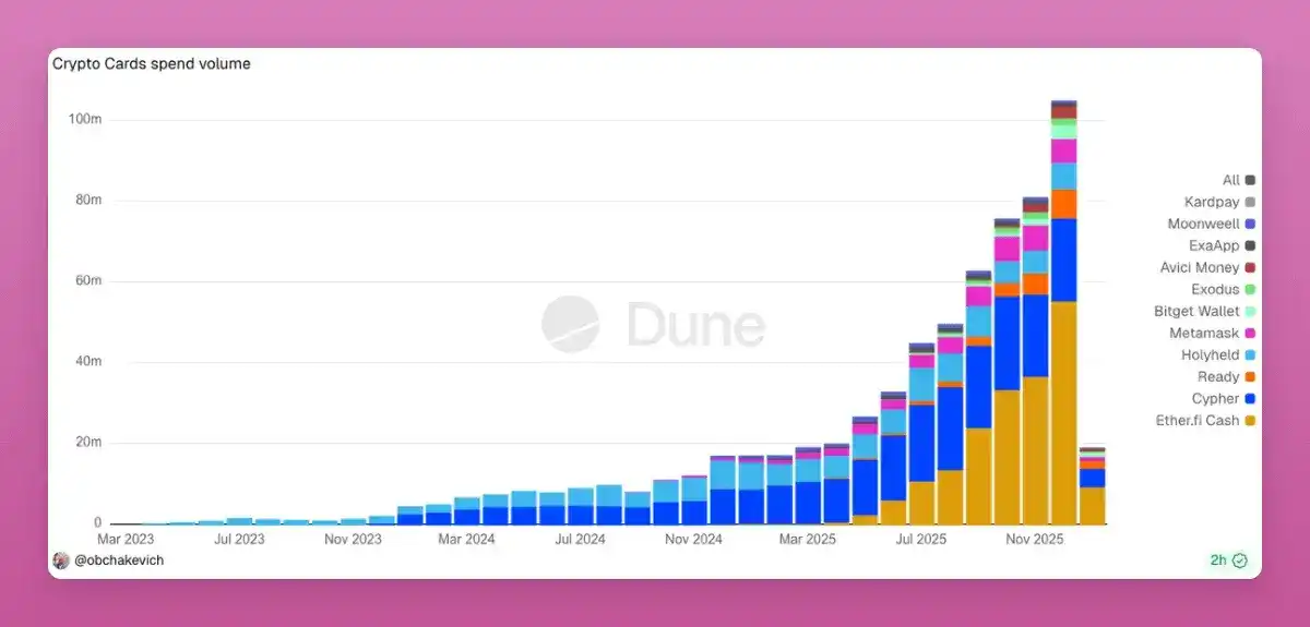 Currently, crypto payment cards have surged due to their convenience in bypassing strict banking AML requirements. Every card swipe is an on-chain transaction. If direct peer-to-peer payments bypassing Visa/Mastercard can emerge by 2026, it will be a thousandfold opportunity.