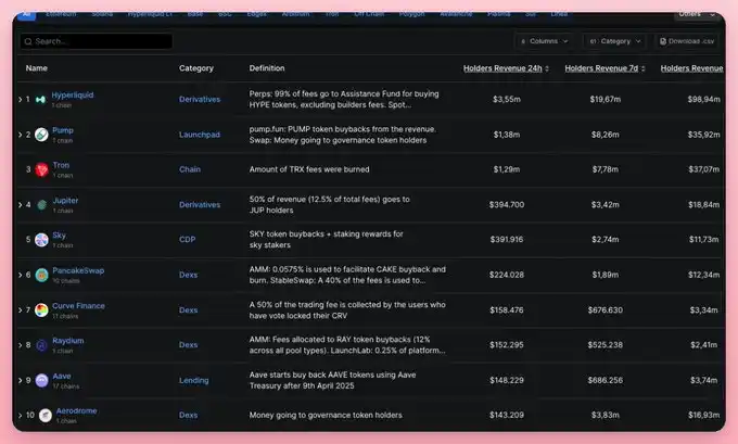 You can track project revenue and holder earnings through platforms such as DefiLlama, Dune, and Token Terminal. Projects worth paying attention to in this category include: $HYPE, $AAVE, $ENA, $PUMP, $SKY, $AER0, $JUP.