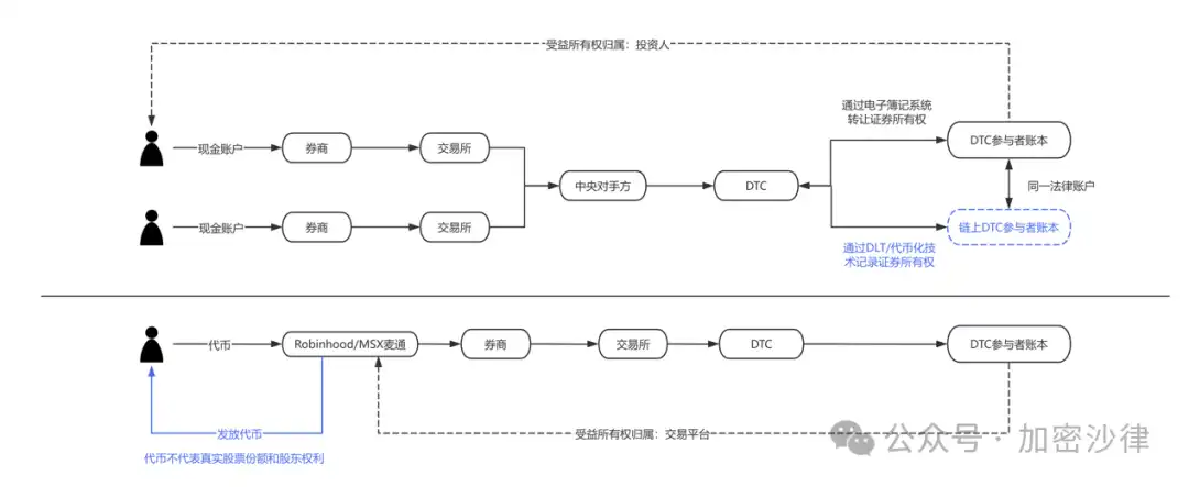 Currently, the equity custody and record-keeping of US stocks operate as follows: assuming a broker has an account at DTC, DTC uses a centralized system to record every buy and sell transaction of shares. Now, DTC proposes, what if we could offer brokers an option to re-record these shareholdings on the blockchain in the form of tokens?