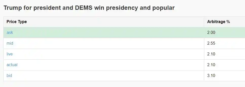 An important note: Be sure to carefully read the rules of each market. Some positions may seem like arbitrage opportunities, but may hide significant risks. For example, if a candidate is assassinated, even if you think you have set up a "stable arbitrage," you may end up losing all your principal.