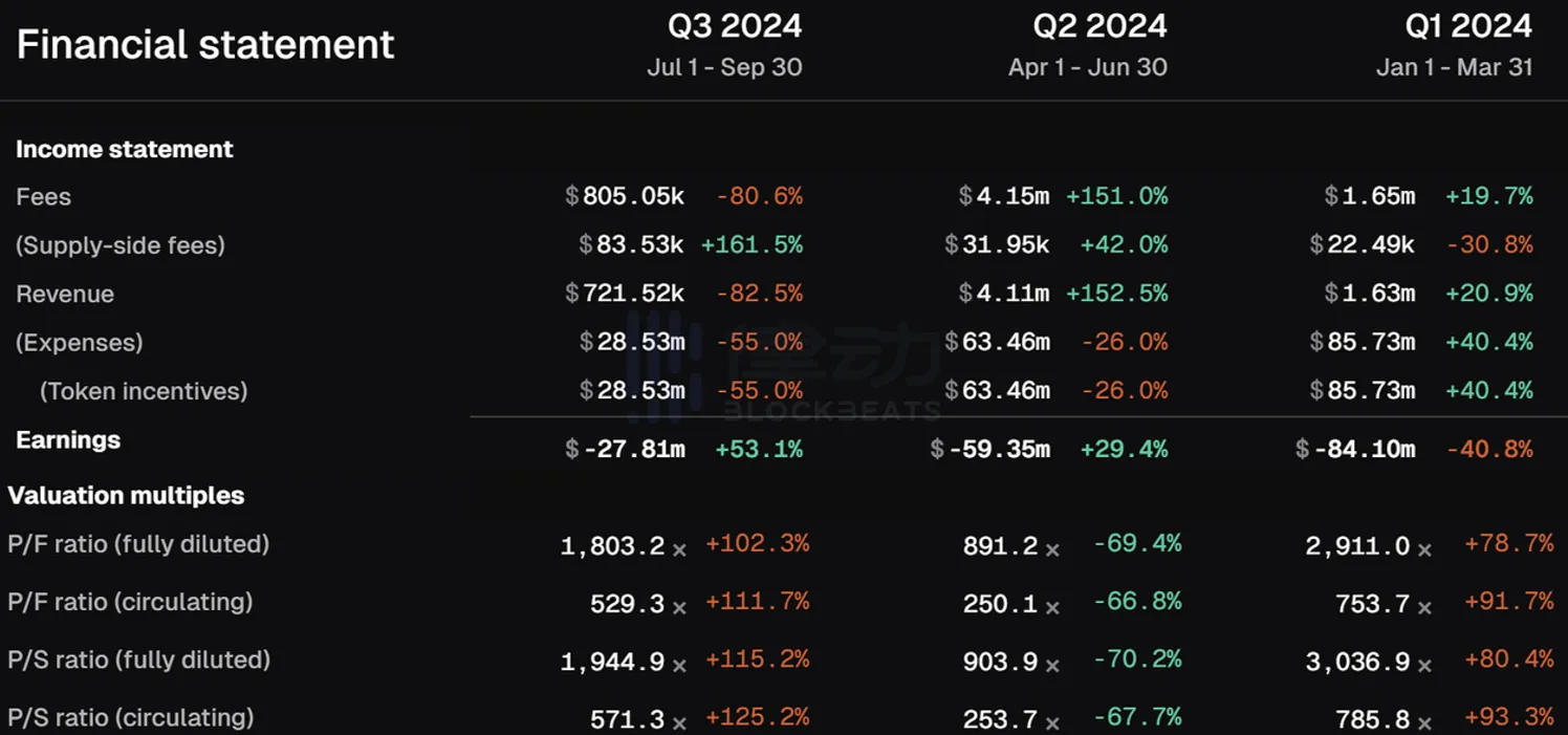 Changes in Filecoin's various financial indicators, data source: Tokenterminal
