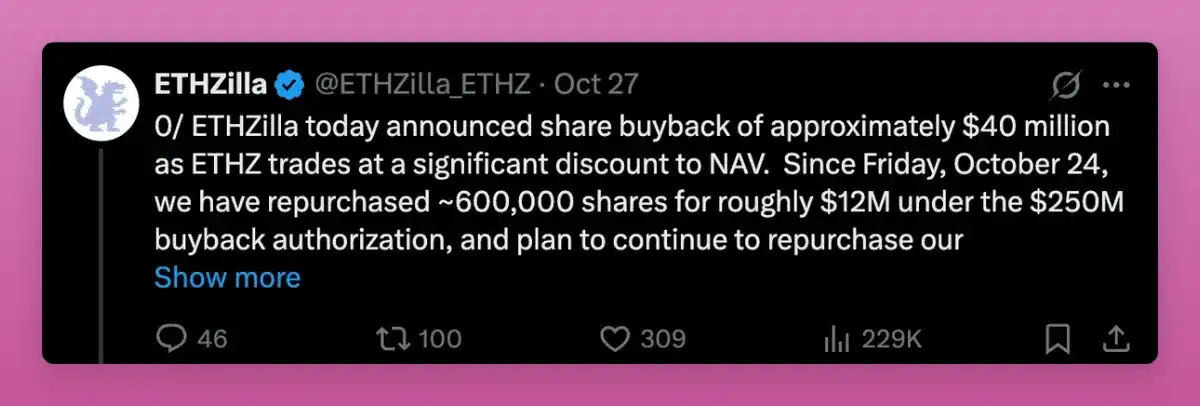 The combination of ETFs and DeFi Application Tokens (DAT) makes the ETH holder base more institutionalized, but it is unclear if they lean more towards long-term growth. The main concern is ETHZilla announcing the sale of ETH to buy back its shares. This is not a reason for panic, but it has set a precedent.