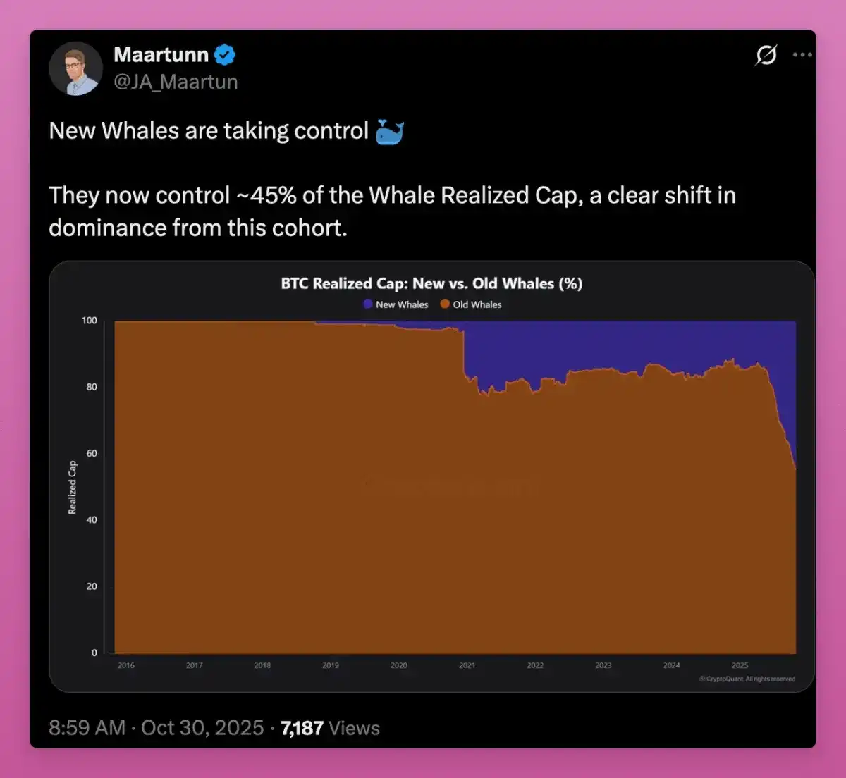 As supply shifts from early whales to new buyers, BTC's average cost price continues to rise, and new holders are now taking control.