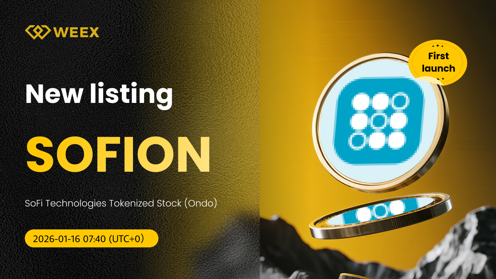 SoFi Technologies Tokenleştirilmiş Hisse Senedi (Ondo) (SOFION) artık WEEX'te işlem görüyor!