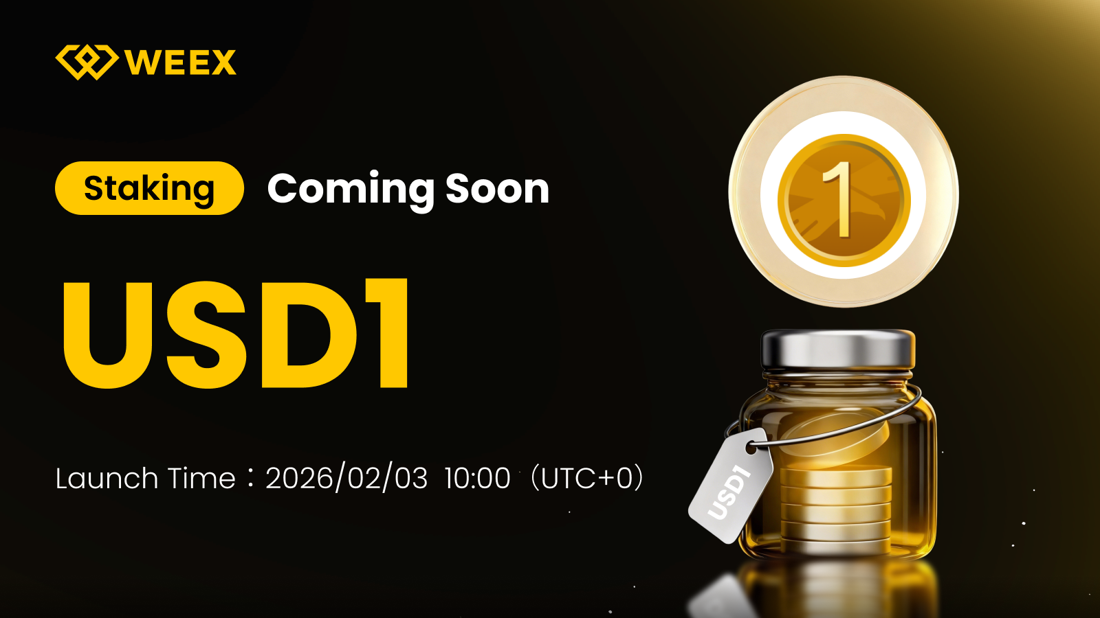 WEEX, USD1Staking özelliğini 2026/02/03 10:00 UTC+0 tarihinde resmi olarak başlatacaktır.